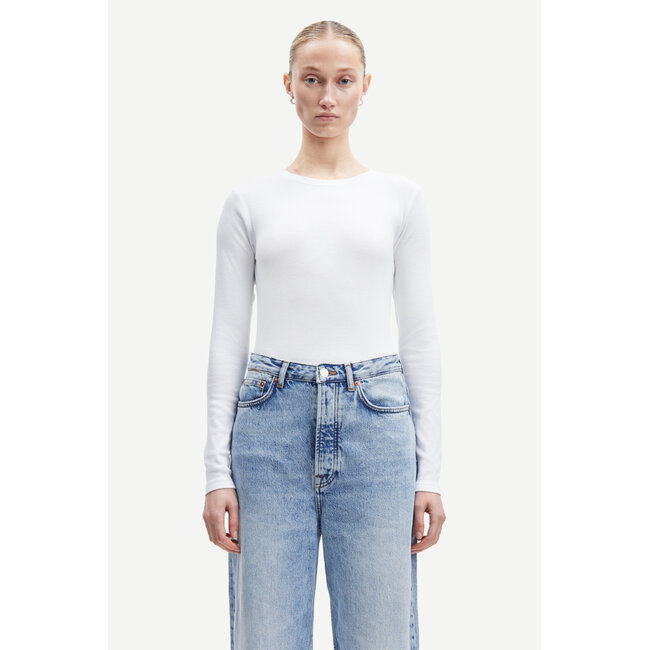 De Samsøe Samsøe Alexa LS 7542 in White is een tijdloze longsleeve van hoogwaardige kwaliteit, ontworpen voor dagelijks draagcomfort met een minimalistische Scandinavische uitstraling. Gemaakt van 100% katoen, voelt dit shirt zacht aan op de huid en biedt het een ontspannen pasvorm die moeiteloos te combineren is met jeans, skirts of layering-items zoals blazers of vesten. Dankzij de klassieke ronde hals, lange mouwen en nette afwerking is deze longsleeve een veelzijdig basic die niet mag ontbreken in je garderobe. Ideaal om online te kopen en te bestellen bij Fraai Supply — perfect als basis voor casual en gelaagde outfits.