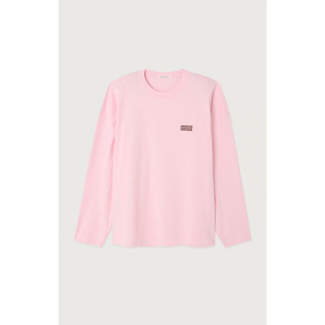 Het design heeft een ronde hals, lange mouwen, en een “American Vintage” logo op de borst, wat dit T-shirt een stijlvolle, minimalistische uitstraling geeft. De drop shoulders en oversized, loose fit zorgen voor een relaxed, casual silhouet dat perfect combineert met jeans, shorts of joggers.