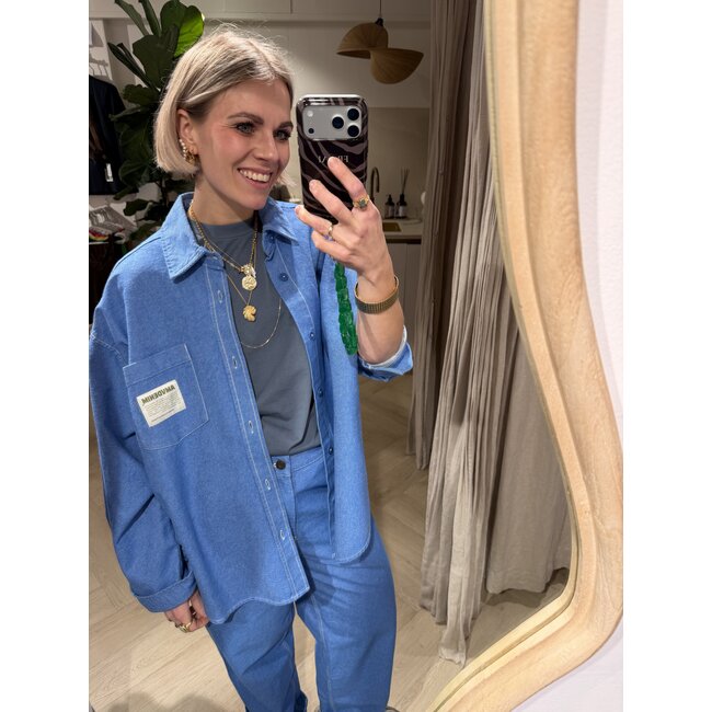 De American Vintage Pusway Blouse in Waterfall is een minimalistische blouse die perfect aansluit bij de bijbehorende Pusway Trousers. Samen vormen ze een stijlvolle, comfortabele set met een relaxte en eigentijdse uitstraling.