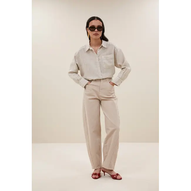 Het Sand Stripe-patroon — subtiele zand-tinten met lichte strepen — geeft de broek een frisse, veelzijdige uitstraling die makkelijk te combineren is met basic tops, blouses of knitwear. Combineer de Begum Pants met sneakers voor een relaxte look of met loafers en een blouse voor een casual-chique outfit. Een echte must-have om online te kopen en te bestellen bij Fraai Supply als fashionable basis-broek.