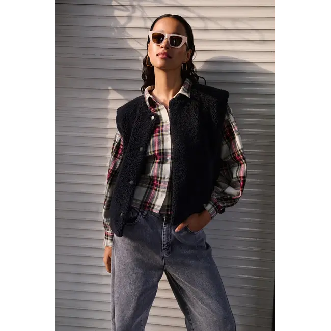 Het ontwerp is tijdloos maar trendy, met een klassieke kraag, knopen middenvoor en comfortabele lange mouwen, waardoor de Noel Jacket een moderne twist krijgt op het klassieke overshirt. De diepe Midnight kleur geeft een elegante, donkere basis waarmee je eenvoudig kunt combineren: denk aan denim, tailored trousers of een zachte knit voor extra warmte.