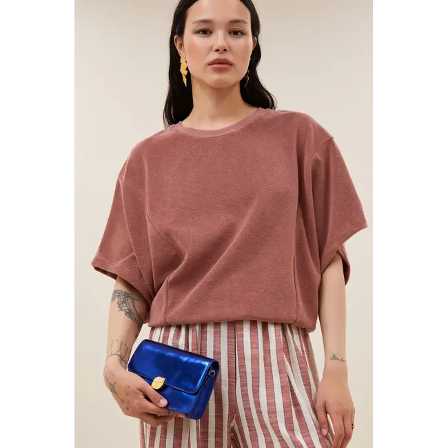 De By-Bar Nuki Slub Top in Withered Rose is een stijlvolle en comfortabele top die moeiteloos combineert met jouw everyday wardrobe. Deze top heeft een regular fit met een flatterende V-hals en subtiele plooidetails rond de halslijn, wat het item een verfijnde, vrouwelijk touch geeft zonder aan comfort in te boeten. De korte mouwen en licht gestructureerde slub-jersey stof maken deze top ideaal voor casual city-outfits of dagelijkse looks met karakter.