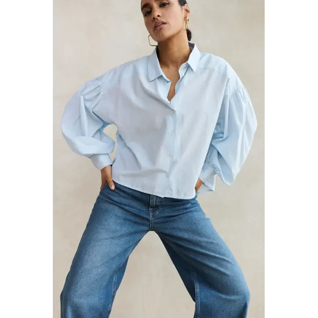 Met een klassieke kraag, knoopsluiting voor en subtiele manchetdetails krijgt deze blouse een tijdloze uitstraling die zowel veelzijdig als stylish is. De zachte Light Blue tint maakt de blouse ideaal voor het voorjaar en de zomer, maar ook prima te combineren met lagen voor tussenseizoensstijl. Draag het met sneakers voor een relaxte daglook of met loafers en blazer voor een nettere outfit.
