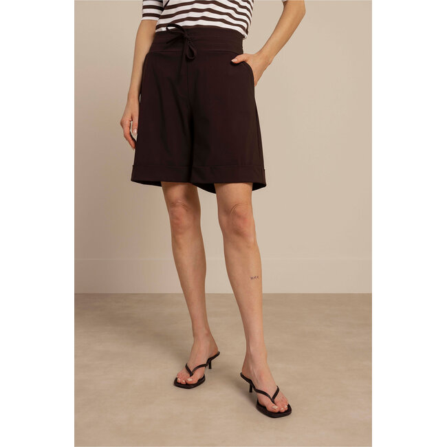 De Studio Anneloes City Bermuda in de kleur Espresso is een stijlvolle dames bermuda die comfort en elegantie perfect combineert. Dankzij de regular fit en lengte tot halverwege de knie heeft deze short een tijdloze en verzorgde uitstraling die geschikt is voor zowel casual als meer geklede outfits.