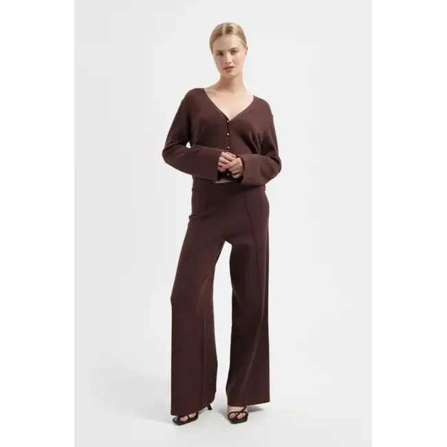 De Avec Ēlan Corine Pants in Espresso combineert comfort met een stijlvolle, moderne look. Deze broek heeft een wide‑leg silhouet en een elastische tailleband met stretch die zorgt voor een ontspannen pasvorm en ultiem draagcomfort – ideaal voor zowel casual outfits als chic gestylede looks. De zachte mixstof met viscose, polyamide en elastaan voelt soepel aan op de huid en behoudt tegelijkertijd zijn vorm gedurende de dag. Of je hem nu combineert met een knit top, een blouse of een blazer, deze pantalon geeft elke outfit moeiteloos stijl en comfort.