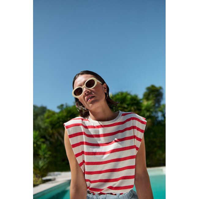 De by-bar Diede Stripe Top in Poppy Red Stripe is een comfortabele en stijlvolle dames top met een speelse en moderne uitstraling. Deze top van by-bar Amsterdam combineert een casual fit met een tijdloos design en is perfect voor dagelijks gebruik.