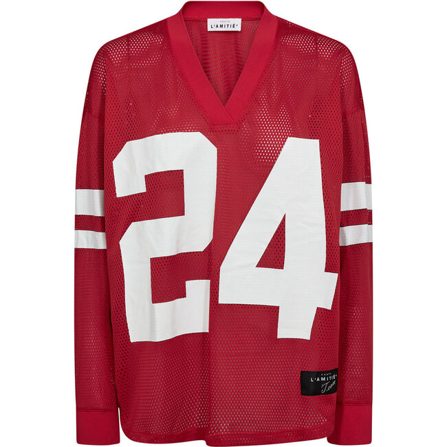 De Haute L’Amitié Drift Number LS Tee is een sportieve lange-mouw top met een casual chic uitstraling. Deze fashion top heeft een trendy V-hals, een oversized pasvorm en opvallende grafische details zoals het centrale numbers-motief en sportieve strepen op de mouwen, wat zorgt voor een moderne en atletische look. Het lichte materiaal voelt comfortabel aan op de huid en draagt aangenaam tijdens de overgangsseizoenen.