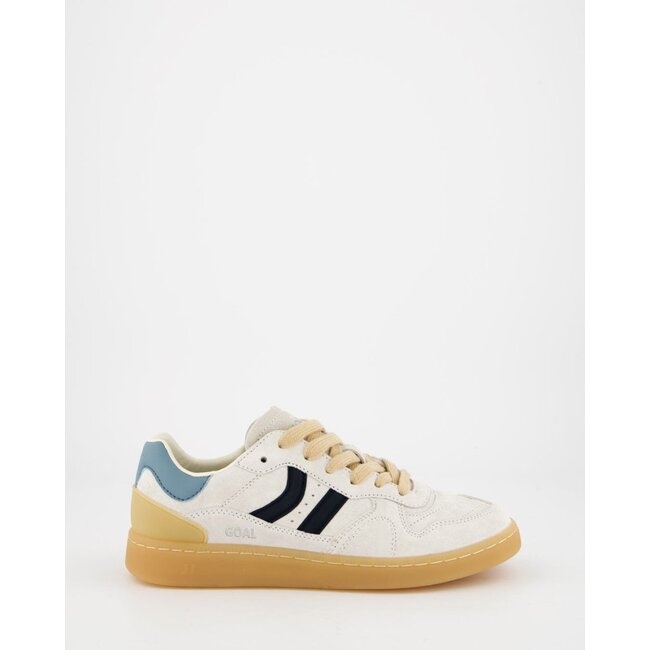 De GOAL sneakers zijn sportief én stijlvol. Ze hebben een suède bovenwerk met contrasterende details, een leren voering en een voorgevormde tong met padding voor optimaal comfort. De licht gewatteerde kraag en de stiksels aan de voorzijde bieden extra ondersteuning. Flexibele rubberen zolen zorgen voor grip en duurzaamheid, en de twee-tone katoenen veters zijn verwisselbaar voor een persoonlijke touch. Het model is herkenbaar aan de “GOAL”-naam in oud-goud op de zijkant.