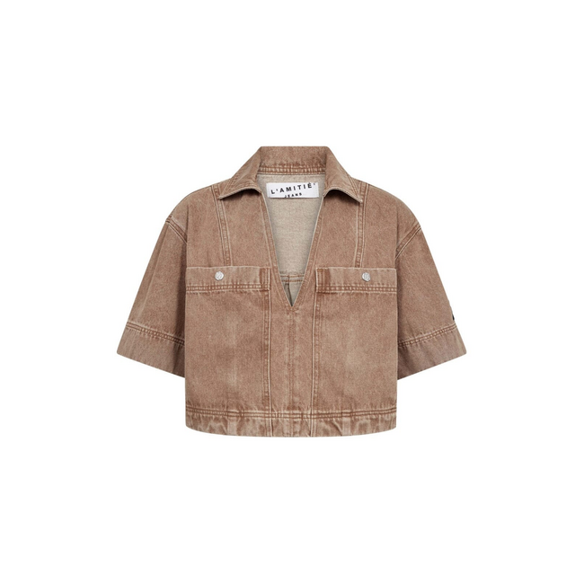 De Haute L’Amitié Drew Denim Top in Camel is een moderne en comfortabele denim top die moeiteloos stijl en comfort combineert. Gemaakt van hoogwaardige denim-stof met een zachte structuur, draagt deze top prettig en blijft hij zijn vorm behouden bij dagelijks gebruik. De relaxed fit geeft een casual, nonchalante uitstraling, terwijl het subtiele knoopdetail op de borst een speels fashion-element toevoegt.