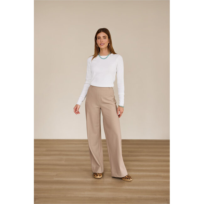De LEXIE BONDED TROUSERS- LATTE van Studio Anneloes voelt als een zachte omhelzing met een strakke, moderne uitstraling. Deze beige Studio Anneloes broek zit comfortabel, geeft subtiele structuur en past moeiteloos bij je dagelijkse outfits — een must-have voor wie minimalistische kleding dames en hippe vrijetijdskleding dames waardeert.
