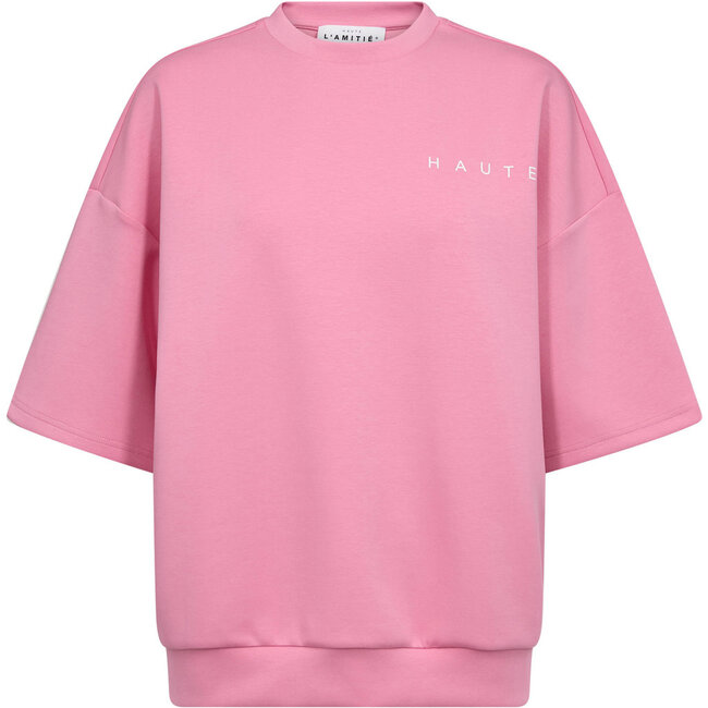 De Haute L’Amitié Maxi Split SS Logo Sweat in Candyfloss is een stijlvolle en moderne sweater met een unieke twist: korte mouwen gecombineerd met een oversized fit. Dit maakt het item perfect voor een casual en eigentijdse look.