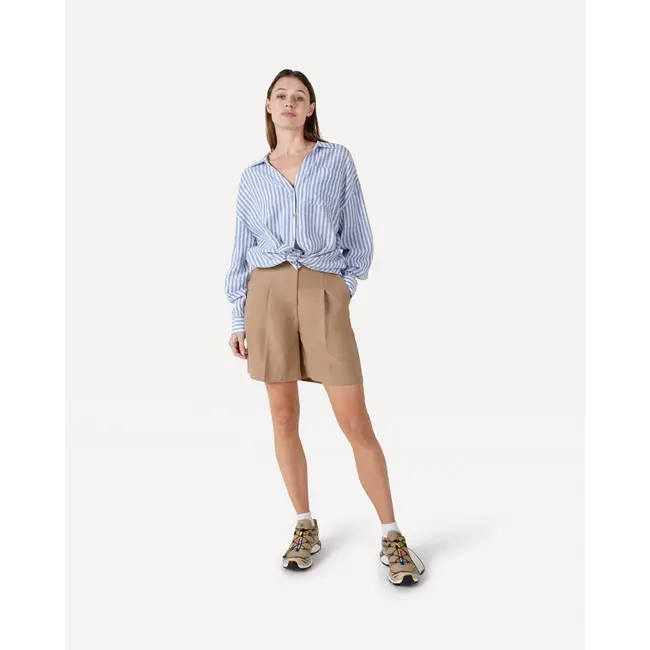 De short heeft een high waist pasvorm en subtiele plooien aan de voorzijde, wat zorgt voor een flatterend silhouet en een elegante uitstraling. Dankzij de soepele lyocell stof voelt de short licht en zacht aan op de huid en biedt hij optimaal draagcomfort tijdens warme dagen.