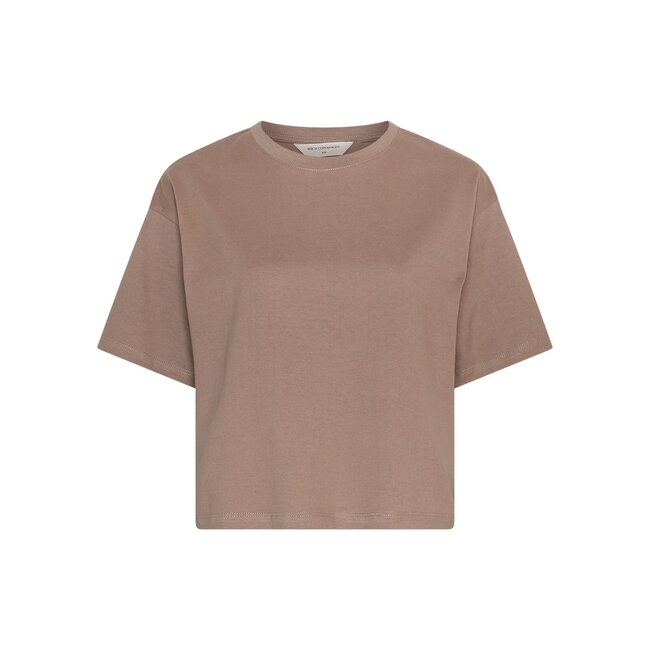 De MSCH Copenhagen MSCHLeana Tee in Mountain Trail Brown is een moderne basic met een minimalistische Scandinavische uitstraling. Het T-shirt heeft een clean design met een ronde hals, korte mouwen en een comfortabele regular fit, waardoor het een veelzijdig item is voor iedere garderobe.
