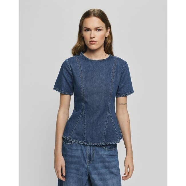 De MSCHTurig Alena SS Top van MSCH Copenhagen is een modern dames denim top ontworpen voor een actuele, strakke look. Gemaakt van 100% OCS-gecertificeerd katoen met een stevige structuur, biedt deze top comfort en stijl in één.