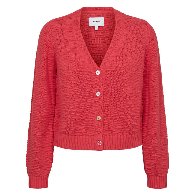 Numirna Cropped Cardigan – Cayenne van Nümph is een felrood vestje dat grijze dagen meteen opvrolijkt. Gemaakt van 100% katoen met een grove gebreide structuur, heeft het een flatterende V-hals en speelse knoopjes. Draag hem over je favoriete T-shirt of jurkje voor een kleurrijke, vrolijke look.