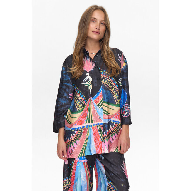 Dit longsleeve shirt is een echte blikvanger dankzij de opvallende grafische print. Het klassieke button-down ontwerp zorgt voor veelzijdige stylingmogelijkheden: draag het casual open of gesloten voor een meer geklede look. De relaxte pasvorm en soepele viscose stof bieden optimaal draagcomfort, de hele dag door. Met lange mouwen en een klassieke kraag is dit shirt perfect voor zowel werk als vrije tijd.