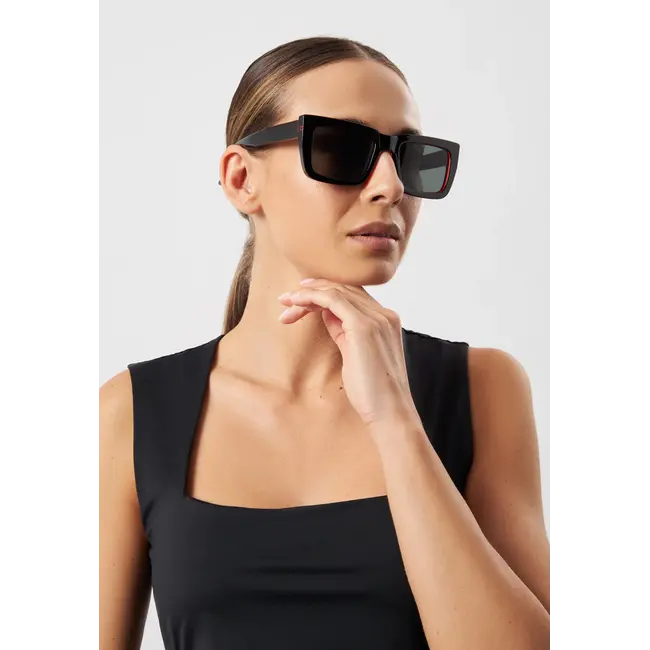 De Eco Shades Palazzo Black & Red zonnebril is een opvallend en stijlvol model met een krachtige look dankzij de combinatie van zwart montuur en rode details. Het moderne, vierkante silhouet geeft deze zonnebril een zelfverzekerde en architectonische uitstraling die iedereen laat opvallen.