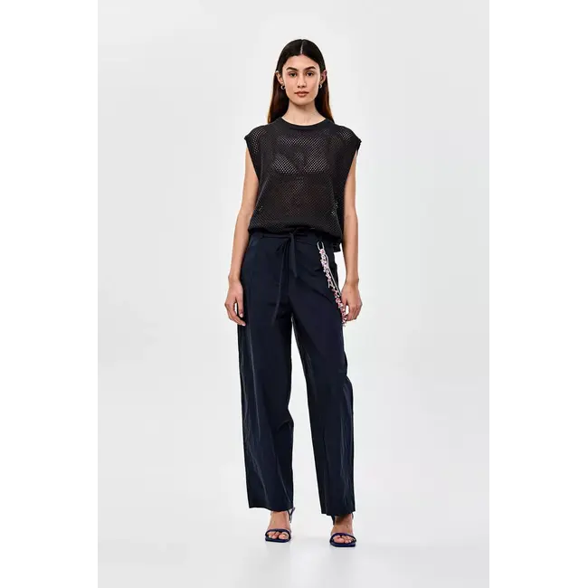 De PINNY top is veelzijdig te stylen: draag hem casual met een broek of short voor een nonchalante look, of combineer met een rok of pantalon voor een meer fashionable outfit. De transparante knit maakt dit item extra interessant en helemaal on-trend.