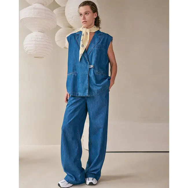 De Regine Blazer S/L Mid Blue Denim van Another Label is een moderne en veelzijdige toevoeging aan je garderobe. Deze mouwloze denim blazer combineert de stoere uitstraling van jeans met de elegantie van een blazer.