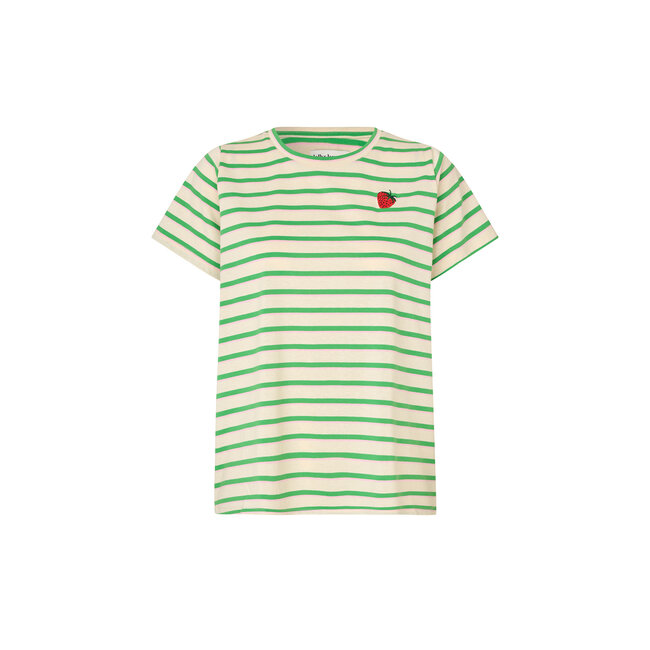De Lollys Laundry RomaLL Tee SS in Green is een vrolijk en stijlvol dames T-shirt dat perfect past bij de speelse en kleurrijke stijl van het Scandinavische merk Lollys Laundry. De frisse groen-crème strepen geven het shirt een zomerse uitstraling en maken het eenvoudig te combineren met jeans, shorts of een rok.