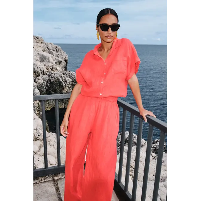 De Rose Linen Blouse Lipstick van by-bar is een stijlvolle en luchtige blouse die perfect past binnen een zomerse garderobe. Deze dames blouse in een frisse lipstick kleur combineert een elegante uitstraling met optimaal draagcomfort.