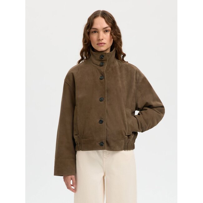 De Selected Slfaiden Suede Jacket – Chocolate Chip is een hoogwaardige suède jas voor dames met een tijdloze uitstraling en Scandinavische designinvloed. Gemaakt van zacht suède geitenleer voor een luxueuze textuur en duurzaamheid. De jas heeft een hoge kraag, knoopsluiting aan de voorkant en praktische paspelzakken — perfect om te combineren met denim, tailored trousers of een midirok. Dankzij de relaxte boxy fit met verlaagde schouders en elastische zoom biedt deze suède jas comfort en modern comfort. Bestel dit kwaliteitsitem online bij Fraai Supply en geef je outfit een stijlvolle upgrade met een veelzijdige outerwear klassieker.