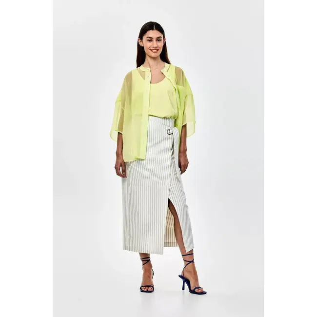 De SIMPLUS GLF Yellow Bright transparante blouse van CKS is een echte eyecatcher voor je zomergarderobe. Deze dames blouse in een frisse gele tint combineert een speelse uitstraling met een verfijnd design.