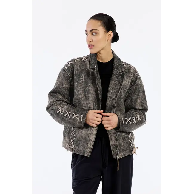 De Gigi Leather Jacket van Stieglitz is een tijdloze leren jas met een klassieke, veelzijdige uitstraling die elke outfit naar een hoger niveau tilt. Gemaakt van 100% echt leer met een ritssluiting voor en handige zijzakken biedt deze jas niet alleen een stoere en moderne look, maar ook praktische functionaliteit voor dagelijks gebruik.