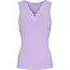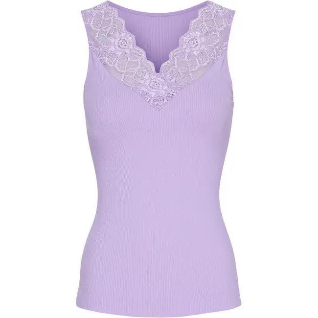 Het item heeft een diepe V-hals met subtiel kant (lace) dat een verfijnde, elegante touch geeft. Je kunt de V-hals zelfs omkeren en op de rug dragen, wat je extra styling-opties geeft in je outfits. De Lavanda kleur — een zachte pastel-lila — combineert prachtig met denim, lichte trousers of rokken en geeft je look een subtiel, vrouwelijk accent.